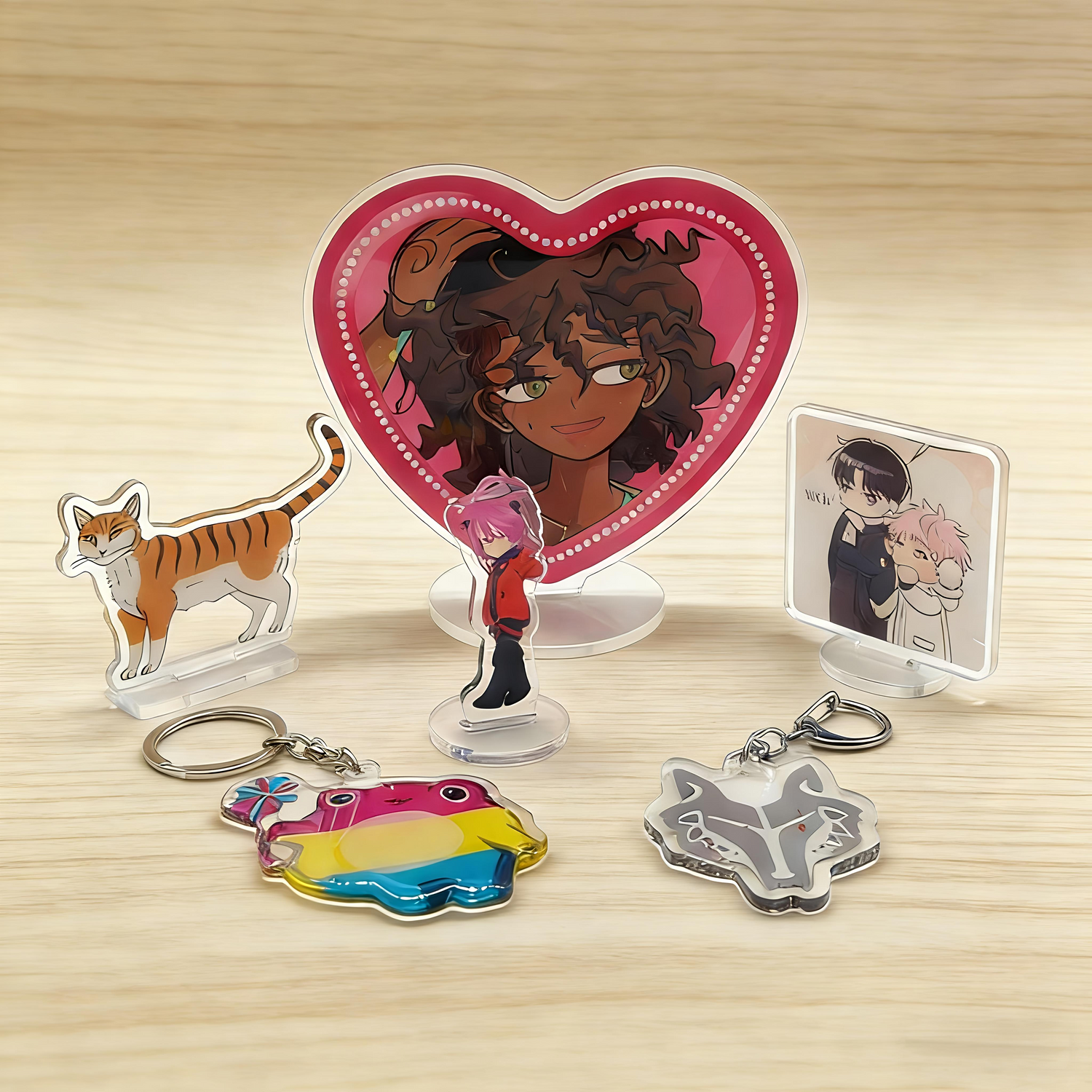 CustomAS is your top choice for premium custom acrylic standees (clear, rainbow, holographic) and acrylic keychains. Bid farewell to flimsy acrylic products that fade, warp or discolor in a short time—our pieces are crafted with high-clarity UV-resistant acrylic, paired with precision laser cutting and fade-proof printing. Every custom acrylic product features vivid long-lasting colors, crisp sturdy edges and superior durability, suitable for indoor and outdoor display, fan gifting and personal collectibles.
